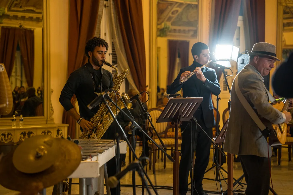 A esa misma constelación de tempos moderados y afectos nostálgicos se integraron Cubanita —obra de Aldo López-Gavilán, concebida originalmente para piano solo como ejercicio académico para su hija Andrea— y Cinema Paradiso, el célebre tema de Ennio Morricone que acompaña a la película italiana homónima de Giuseppe Tornatore. En Cubanita, la obra escrita por un padre para su hija encontró su espejo en la escena justo en las manos de Paola Abreu al piano y su padre Janio en el saxofón. Mientras que en Cinema Paradiso asistimos a la relectura de la referencia cinematográfica y su célebre banda sonora, enriquecida por el vibráfono a cargo del joven Elías Alexander Ferrer.